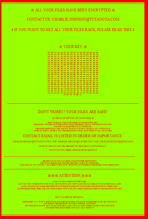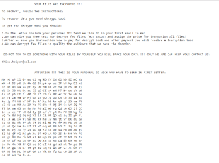 Внимание! Новые расширения, email и тексты о выкупе можно найти в конце статьи, в обновлениях. Там могут быть различия с первоначальным вариантом. Образец этого крипто-вымогателя был найден в начале февраля 2019 г. Штамп времени: 3 февраля 2019. Ориентирован на англоязычных пользователей, что не мешает распространять его по всему миру. Нет никаких данных о массовом распространении. Вероятно, что это тестовый или единичный экземпляр.