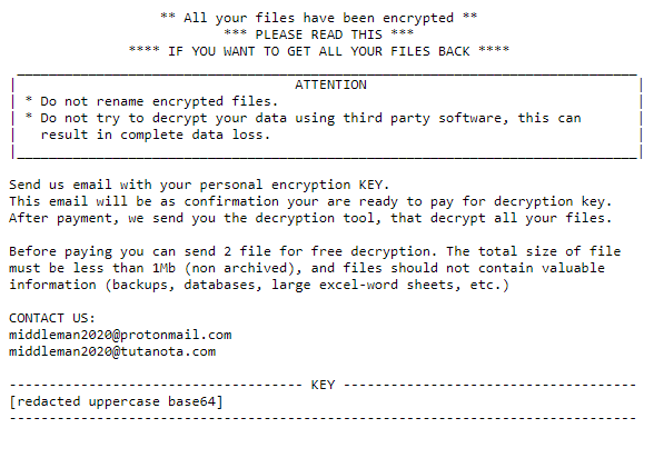 Email: middleman2020@protonmail.com, middleman2020@tutanota.com